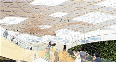 長20米,重300公斤,一件由40個部件構(gòu)成的、形如飛鳥的大型裝置作品懸掛在新近開業(yè)的華潤萬象天地穹頂。這是日本藝術(shù)家北山善夫為萬象天地量身打造的藝術(shù)作品《無形》,特別值得一提的是,如此巨大的作品,是由藝術(shù)家用竹枝和紙,耗時數(shù)月純手工制作完成。北山善夫說:“我生命的意義不在于作品本身,而是在制作這些作品的過程中。”
