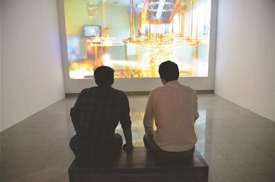 觀眾在觀看多媒體藝術展