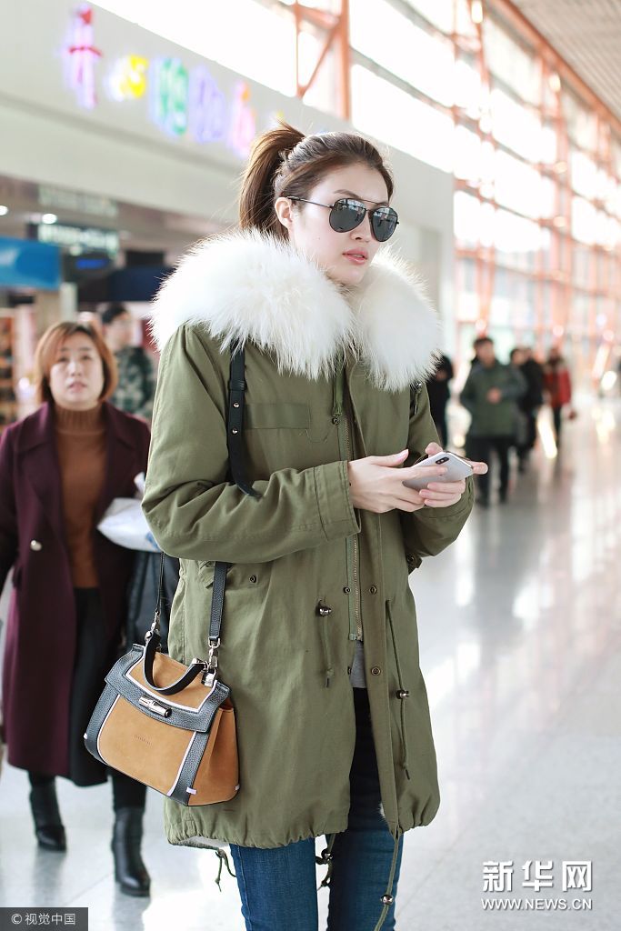 2017年12月14日,何穗現(xiàn)身機(jī)場,手插口袋御寒戴白色羽絨帽喜感足。