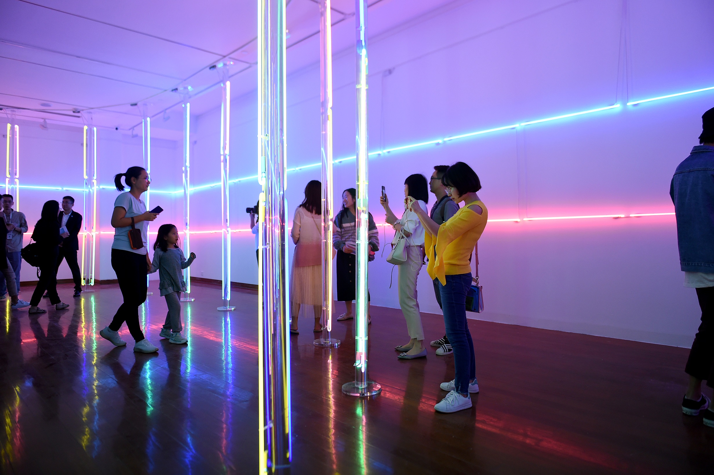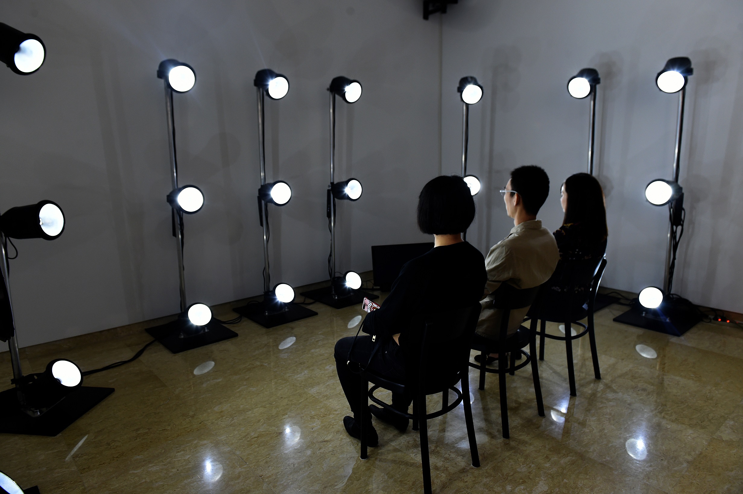 很多觀眾排隊體驗丹麥館的《斷電》,它由27根頻閃觀測器燈圍著三張座椅。觀眾坐下,閉上眼睛……通過預(yù)設(shè)好的燈光順序,閉上眼睛眼前將會呈現(xiàn)幾乎會引起幻覺的燈光圖案。同音樂一起,制造了一場浸入式的感官體驗。通過調(diào)動眼球與大腦的敏感性,看它們?nèi)绾萎a(chǎn)生視覺“斷電”。