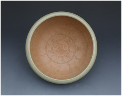 《耀瓷刻花牡丹紋罐》造型飽滿渾圓,而靈秀活潑,敦厚端莊。鼓腹處的纏枝牡丹富貴雍容,刻花刀鋒犀利,線條流暢。滿施的青釉冰潔玉潤,超凡脫俗。