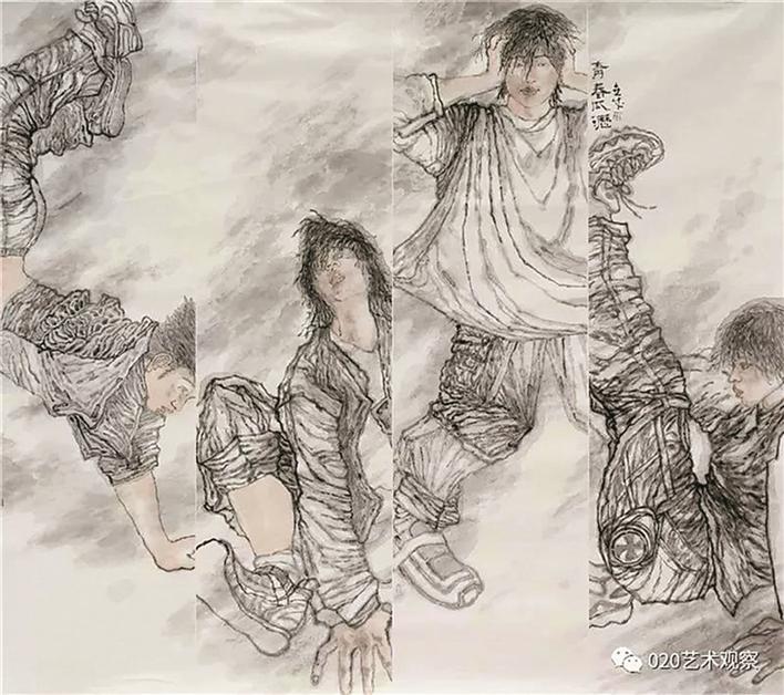 據(jù)悉,原作正是深圳市福田區(qū)美術(shù)家協(xié)會(huì)主席張闖《2004—街舞》布面油彩,有所不同的是涉嫌抄襲的作品是國(guó)畫。從細(xì)節(jié)對(duì)比上看,作品相似度極高。此外,涉嫌抄襲的作品的方向與張闖的原作相反。有人猜測(cè),涉嫌抄襲的作者是將張闖《2004—街舞》通過(guò)電腦制作反轉(zhuǎn)過(guò)來(lái),或者是投影后制作完成作品的。