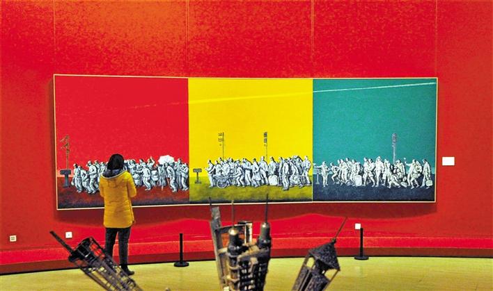 進(jìn)入中國(guó)美術(shù)館正中圓廳,巨幅三聯(lián)作《時(shí)代之歌——闖·創(chuàng)·窗》格外令人矚目。廣東省美術(shù)家協(xié)會(huì)副主席、深圳市文聯(lián)專職副主席梁宇向記者表示,“我畫的是不同時(shí)期的普普通通的深圳建設(shè)者,正是他們鑄就了深圳發(fā)展的奇跡?!?/p>