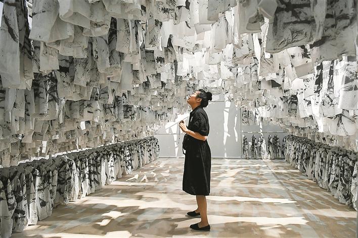 記者在OCAT深圳館展出的“水墨無疆”主題展上看到,從水墨多媒體到燈光裝置,從二維到三維,從靜態(tài)到動態(tài),從平面到立體等多種形式的作品,為觀眾帶來了全新的視覺體驗,開拓出古老中國水墨在當代的各種可能性。在華·美術館一樓展出的是“攬古爍今”主題展上,策展人吳洪亮邀請了12位藝術家,試圖以多維的方式呈現(xiàn)他們身在現(xiàn)代、心有傳統(tǒng)的藝術追求。主題展“筆墨至式”在華·美術館展出,策展人尚輝邀請國內12位獨具筆墨特色的藝術家展示個性化的作品。