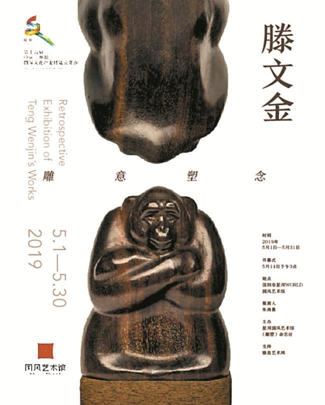 深圳晚報2019年05月08日訊 (記者 楊慧) 近日,《雕意塑念——騰文金作品回顧展》在星河國風藝術(shù)館與觀眾見面。展覽由星河國風藝術(shù)館與《雕塑》雜志共同主辦,策展人為《雕塑》雜志主編朱尚熹。本次展覽是滕文金近30年來第一次大型個人回顧展,甄選其逾50年創(chuàng)作歷程中的300余件力作,包括銅雕、木雕、繪畫等藝術(shù)形式。展期將到5月30日。