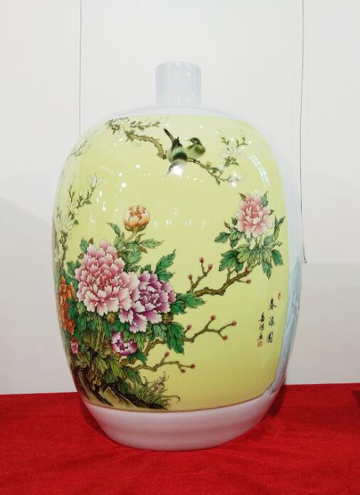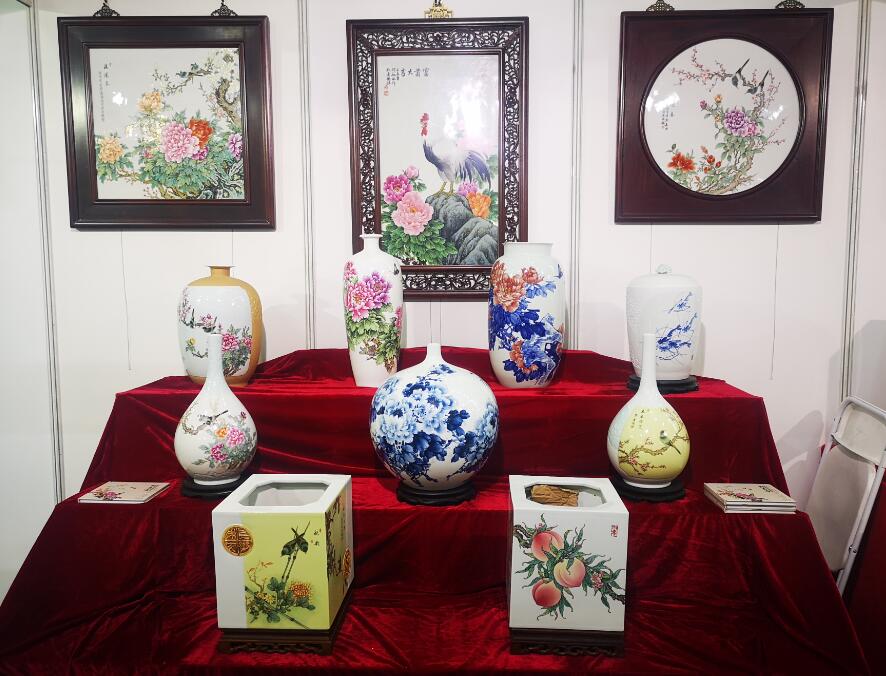 江西省陶瓷技能大師、江西省高級(jí)工藝美術(shù)師、惲派花鳥(niǎo)第十二代傳人、景德鎮(zhèn)青年陶瓷藝術(shù)家劉嘉鴻此次展會(huì)展出的陶瓷藝術(shù)作品共計(jì)35件,包含瓷板畫(huà)、瓷瓶、瓷盤(pán)、青花瓷、青花斗彩瓷等,其中《春滿(mǎn)園》、《錦堂富貴》、《長(zhǎng)壽圖》等作品呈現(xiàn)陶瓷技藝,展示出劉嘉鴻深厚的藝術(shù)造詣。