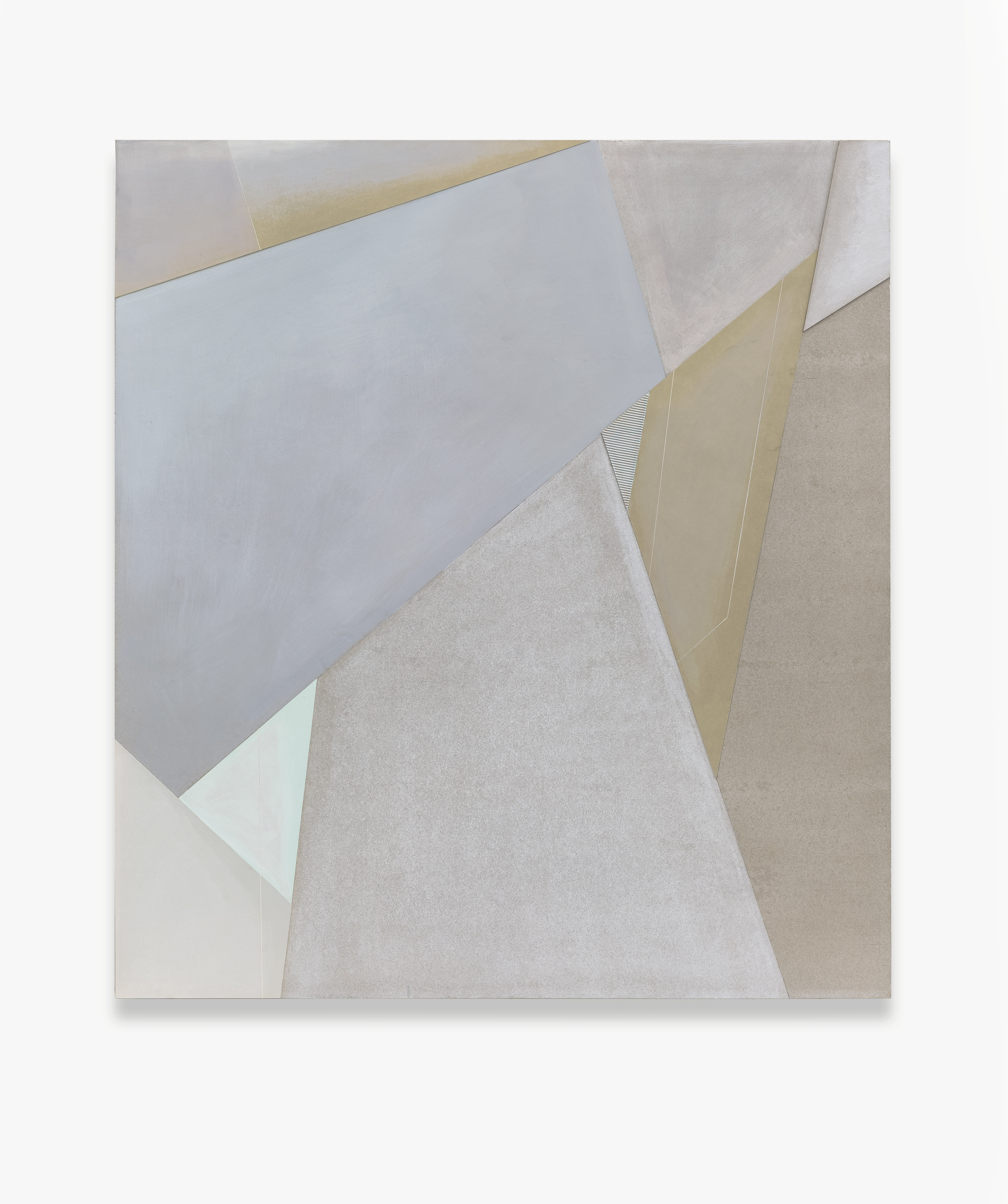 自2013年王豪開始以水泥作為個人創(chuàng)作媒介以來,三個系列“寂”、“樸”、“遠(yuǎn)”并行展開?!凹拧焙汀皹恪睆?qiáng)調(diào)水泥作品的靜態(tài)特征,不論是單件作品還是多件組合作品,在水泥材料的細(xì)微變化與色塊搭配上,力求傳達(dá)出一種寧靜、樸拙的整體氣息;“樸”系列在形式上更為豐富,不僅嘗試使用斜線、三角形乃至圓形,還探索富于中國古典韻味的形式表達(dá)(例如對中國古代手卷的模擬);“遠(yuǎn)”系列的名稱則來源于中國傳統(tǒng)山水繪畫所特有的透視技法“三遠(yuǎn)”概念,這系列作品意圖通過畫面的動態(tài)表現(xiàn)打破二維空間限定,拓展平面繪畫的深度與廣度,從美學(xué)意境上與高遠(yuǎn)、深遠(yuǎn)、平遠(yuǎn)相融合。