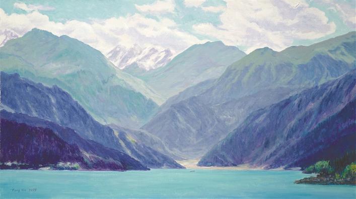 唐寅近幾年的創(chuàng)作成果頗豐,從“致境”“光景常新”“春暖花開”“映天印象”“心源化境”和“真際”“臨水”“萬物有靈”“四季和風(fēng)”等展覽的舉辦和作品創(chuàng)作可以看出,他的油畫風(fēng)景畫在具有自然真實屬性的同時,突破對景寫生的西畫藩籬,更多的是針對自然的有意識剪裁,呈現(xiàn)了中國式的取景造境和意象精神。