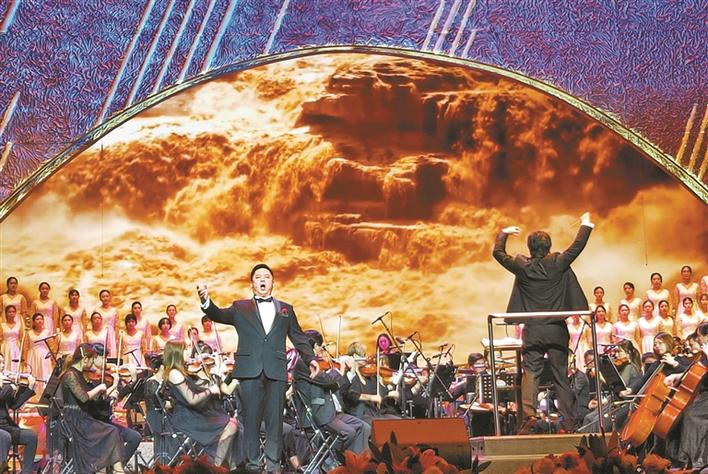在盧向榮的慷慨激昂的朗誦中,青年歌唱家唱響了整部《黃河大合唱》。通過《黃河船夫曲》《黃河頌》《黃河之水天上來》《黃水謠》《河邊對口曲》《黃河怨》《保衛(wèi)黃河》《怒吼吧,黃河!》八個樂章,贊美中華民族堅貞不屈、頑強(qiáng)抗?fàn)幍挠⑿蹥飧?,為觀眾呈現(xiàn)了一臺凝聚偉大靈魂、提供強(qiáng)大精神激勵的聽覺盛宴。