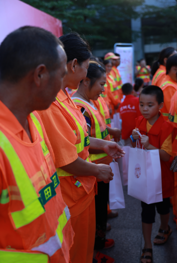 活動現(xiàn)場,深圳市關(guān)愛辦、中國銀行深圳分行代表主辦方還向現(xiàn)場30余位環(huán)衛(wèi)工人贈送了早餐、餐券及工作馬甲等物資。