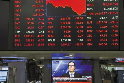 受中美經(jīng)貿(mào)沖突影響,6日紐約股市三大股指道瓊斯工業(yè)平均指數(shù)、標準普爾500種股票指數(shù)、納斯達克綜合指數(shù)分別比前一交易日下跌2.34%、2.19%和2.28%,其中道瓊斯指數(shù)盤中一度暴跌逾700點。