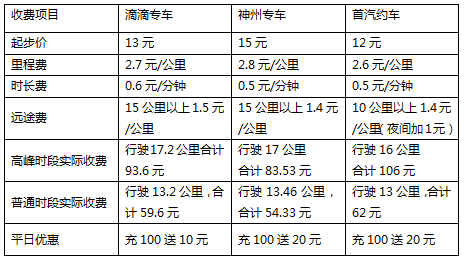 從各家平臺的價格列表來看,同樣選擇20萬級別專車,滴滴起步價為13元,普通時段里程費為2.7元/公里,時長費為0.6元/分鐘,神州起步價為15元,普通時段里程費為2.8元/公里,時長費為0.5元/分鐘,首汽起步價及里程費分別為12元與2 .6元/公里,在普通白天時段綜合對比,這里三家都沒有呈現特別突出的價格優(yōu)勢。