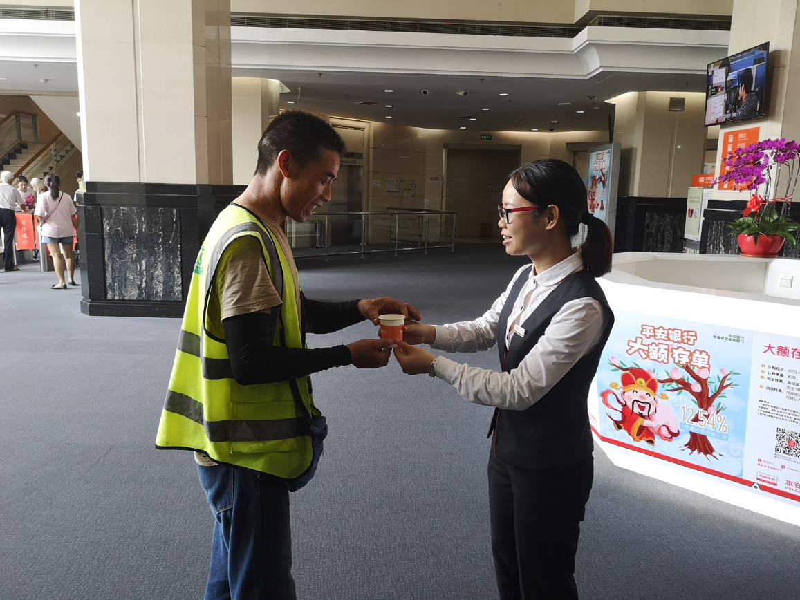 炎炎夏日,清潔工、建筑工人、快遞員等戶外工作者,頭頂著烈日、在滾滾熱浪中辛苦工作,守護著城市的安寧與美麗。為了關(guān)愛這些戶外工作者,傳遞社會正能量,踐行社會責任,平安銀行在全國網(wǎng)點發(fā)起了“夏日送清涼?平安更懂你”公益行動。該行深圳分行也在深圳地區(qū)100多家網(wǎng)點全面開展了此項公益活動,在炎熱的夏日為戶外工作者送去一份關(guān)愛。