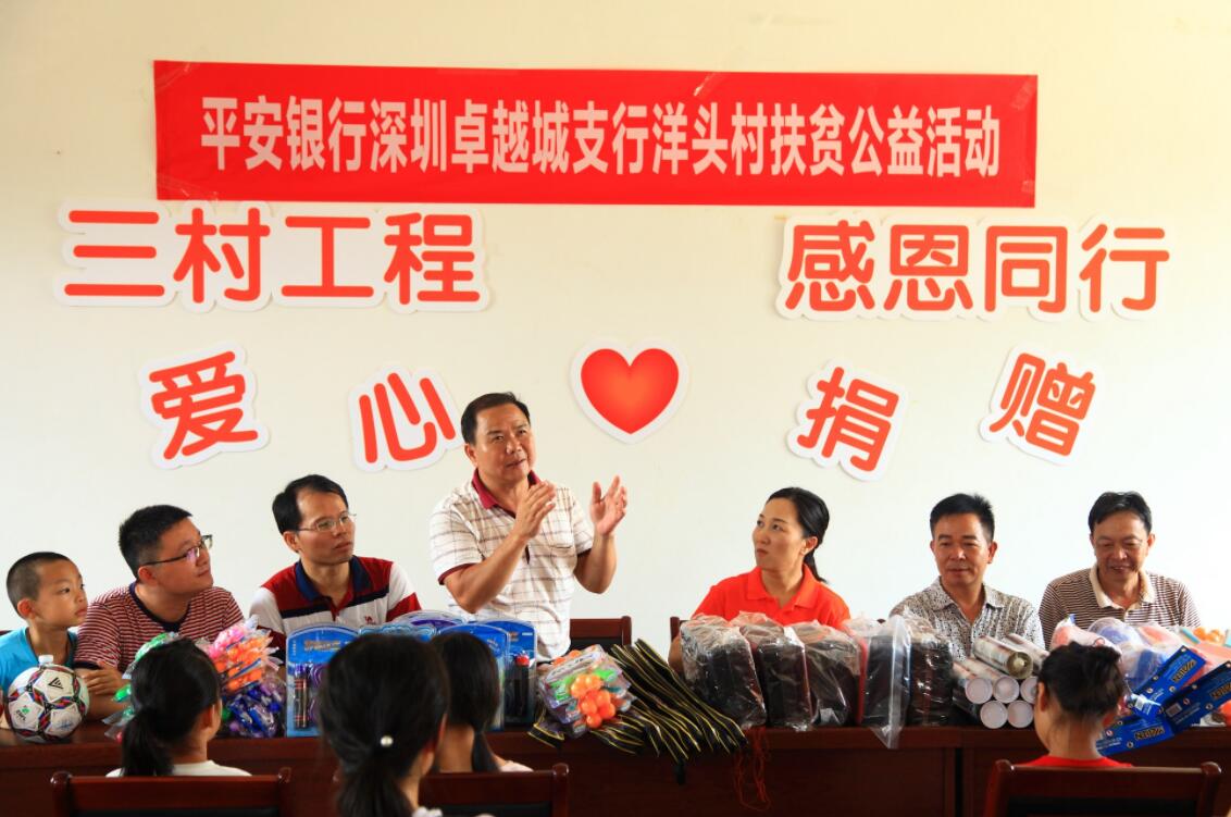 深圳新聞網(wǎng)訊 8月19日上午,為響應(yīng)平安集團(tuán)“三村工程”建設(shè)和平安銀行總、分行黨委關(guān)于扶貧工作的號(hào)召,踐行社會(huì)責(zé)任,平安銀行深圳卓越城支行客戶、員工一行25人前往該行對(duì)口扶貧村紫金縣龍窩鎮(zhèn)洋頭村開展了扶貧公益活動(dòng)。