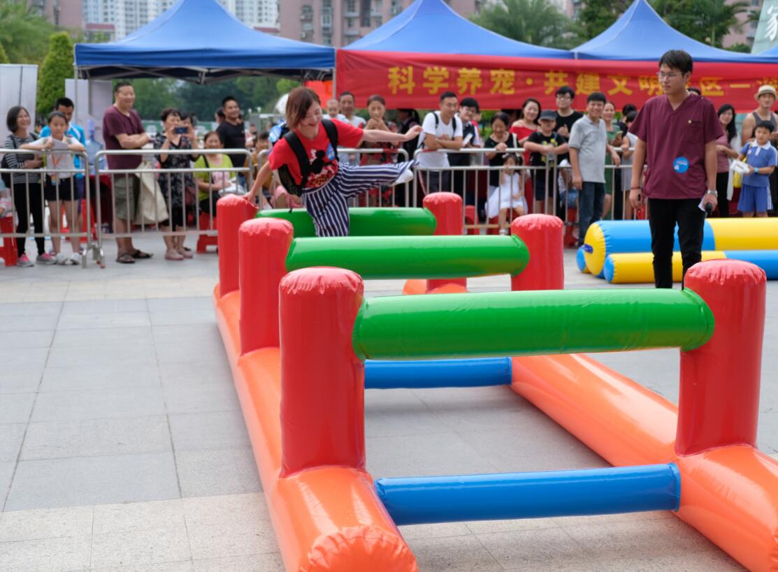 記者在現(xiàn)場看到,運動會由汪星人“翻山越嶺”障礙物通關(guān)和喵星人“萌主起駕”鏟屎官闖關(guān)兩個項目組成,比賽競爭激烈趣味無窮,吸引了社區(qū)鄰里參與互動,活動氣氛歡樂無邊。此次活動既為社區(qū)帶來一場別開生面的趣味活動,又為社區(qū)居民宣傳了科學(xué)養(yǎng)寵的相關(guān)知識,倡導(dǎo)文明養(yǎng)寵和諧社區(qū)的正能量?;顒蝇F(xiàn)場處處歡聲笑語,社區(qū)居民與小寵物們共享歡樂。