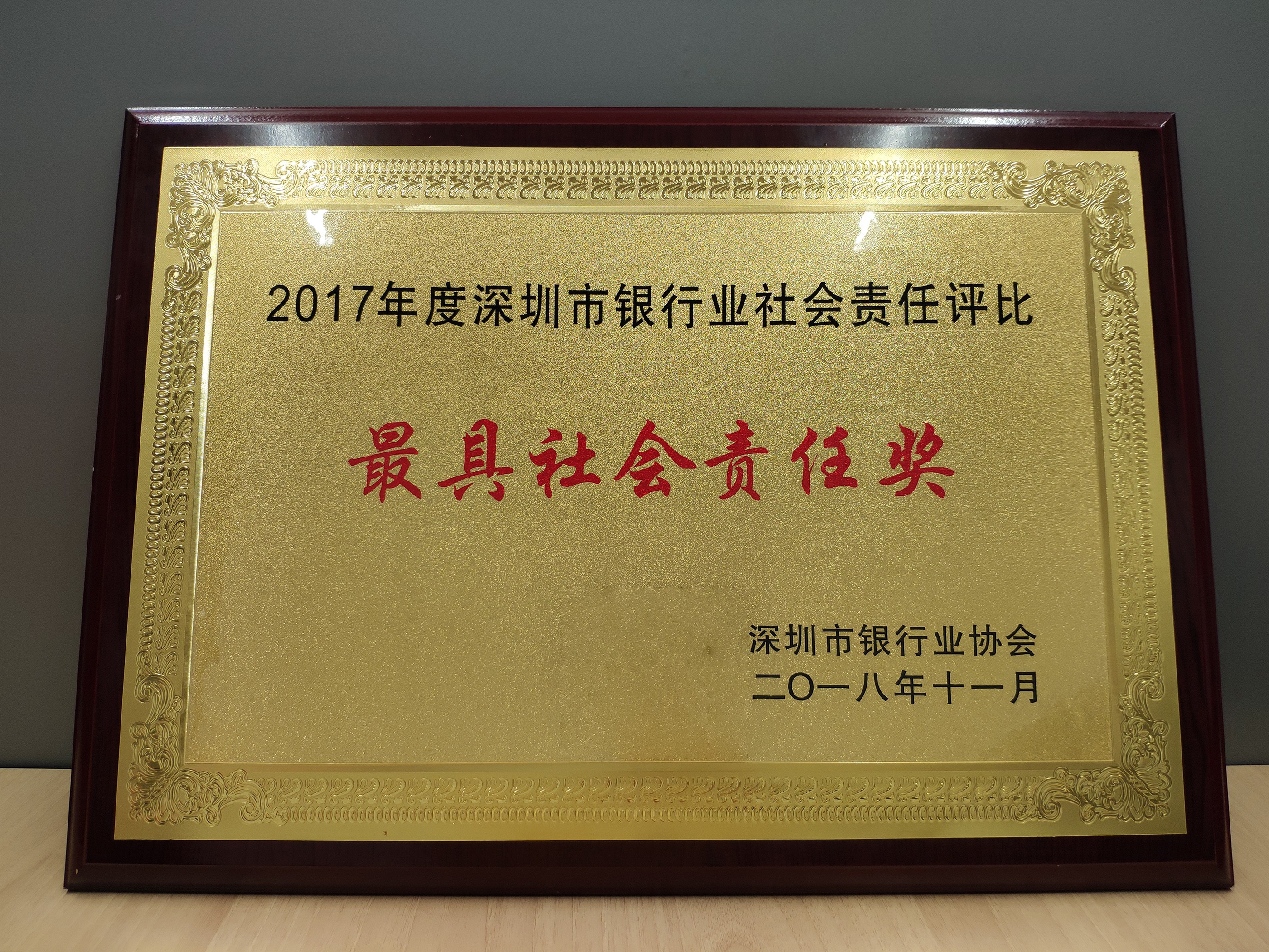 據(jù)了解,2017年度深圳市銀行業(yè)社會責任評比活動是由深圳市銀行業(yè)協(xié)會組織舉辦,邀請業(yè)內外專家成立評審委員會,根據(jù)各參評單位申報的相關材料,通過對參選金融機構的材料審查、公益活動組織情況等進行評分,評選出9家在服務實體經(jīng)濟、支持慈善公益、助力綠色金融、回饋社會公眾等方面工作有著優(yōu)秀表現(xiàn)的“最具社會責任”金融機構。