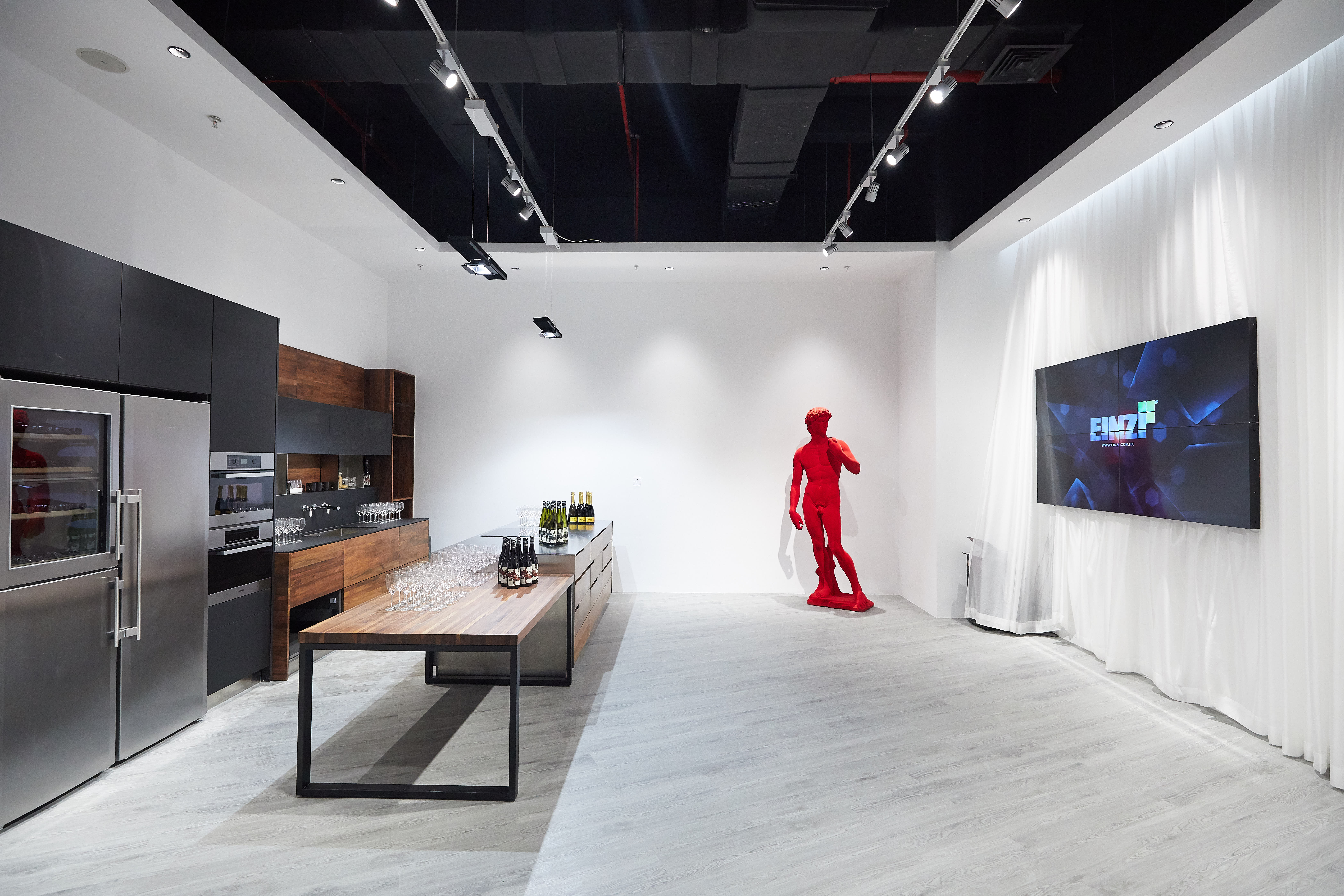 EINZI店內(nèi)設(shè)計以意式簡約風格為主,極具空間感。旗艦店放置多款經(jīng)典系列及熱銷廚柜款式,以大膽時尚的用色、圖案及無與倫比的優(yōu)秀組件組成,再配以來自意大利高級板材,質(zhì)感完美。