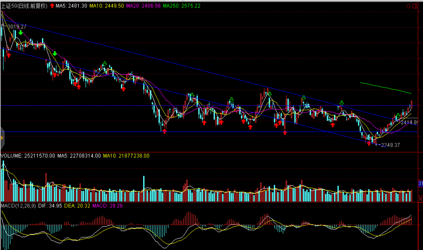 技術面:短期維持上行趨勢,上證50年線短期目標、滬綜指站穩(wěn)半年線后挑戰(zhàn)2700點一線、創(chuàng)業(yè)板短期壓力1350點一線。