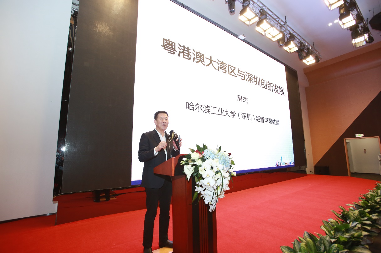在嘉賓演講環(huán)節(jié),深圳市原副市長、哈工大深圳經(jīng)管學(xué)院教授唐杰向與會嘉賓作了題為《粵港澳大灣區(qū)背景下的深圳發(fā)展新機(jī)遇》的精彩報(bào)告。唐教授回顧了深圳四十年的發(fā)展進(jìn)程,表示深圳是個(gè)由無限個(gè)傳奇故事編織起來的年輕城市,新的機(jī)遇帶來新的產(chǎn)業(yè)震蕩,正成長為我國重要的經(jīng)濟(jì)、貿(mào)易、金融中心和創(chuàng)新發(fā)展的代表。