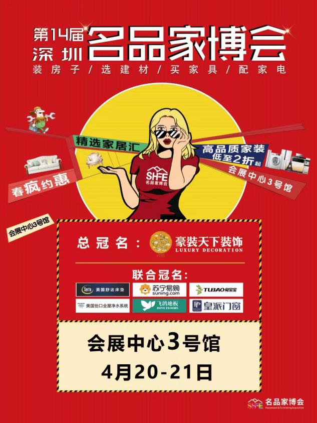 由豪裝天下裝飾集團(tuán)總冠名并聯(lián)合蘇寧易購、美國(guó)舒達(dá)床墊、飛鴿地板、皇派門窗共同助力的第14屆深圳名品家博會(huì),將于4月20日—21日舉行在深圳會(huì)展中心舉辦。千余個(gè)家居一線品牌、萬余款家裝大牌產(chǎn)品齊聚本屆深圳家博會(huì),將為深圳數(shù)萬裝修家庭帶來驚喜與福利。