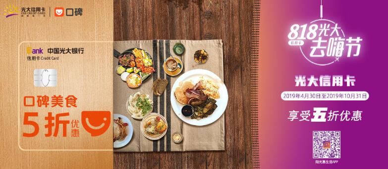 活動三:2019年6月1日-2019年8月31日,每周五、周六、周日10:00至24:00點整活動期間支付寶實名認證個人用戶在口碑指定商圈,用戶使用支付寶賬戶綁定光大銀行信用卡,通過口碑手機客戶端或支付寶-口碑頁面購買線上商圈通用券,或進行當(dāng)面付支付消費,可有機會享受5折優(yōu)惠,最高封頂優(yōu)惠50元,活動期間每天限20000個優(yōu)惠名額,用完即止?;顒悠陂g同一用戶每天限享1次優(yōu)惠,同一用戶每月最多可享受2次優(yōu)惠。