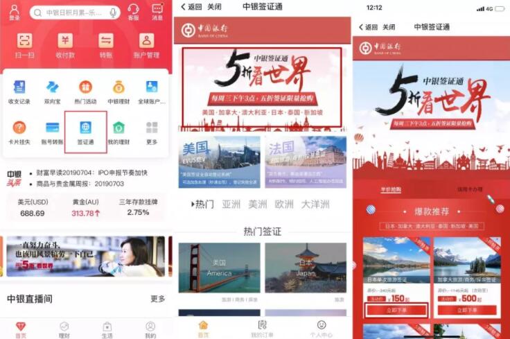 5折沒搶到,怎么辦?不怕,中行送您優(yōu)惠大禮包,8月28日(周三)下午3點-4點期間對于首次參與“五折看世界”半價活動,搶購未成功的用戶,可獲得總價值210元優(yōu)惠券禮包(同一個中國銀行賬戶限首次領?。┤绻k理簽證需要開立存款證明可直接在中國銀行手機銀行辦理線上個人存款證明。不用線下跑銀行,不用排隊等號即可在線申請包括立等可取的電子存款證明以及郵寄到家的紙質存款證明。