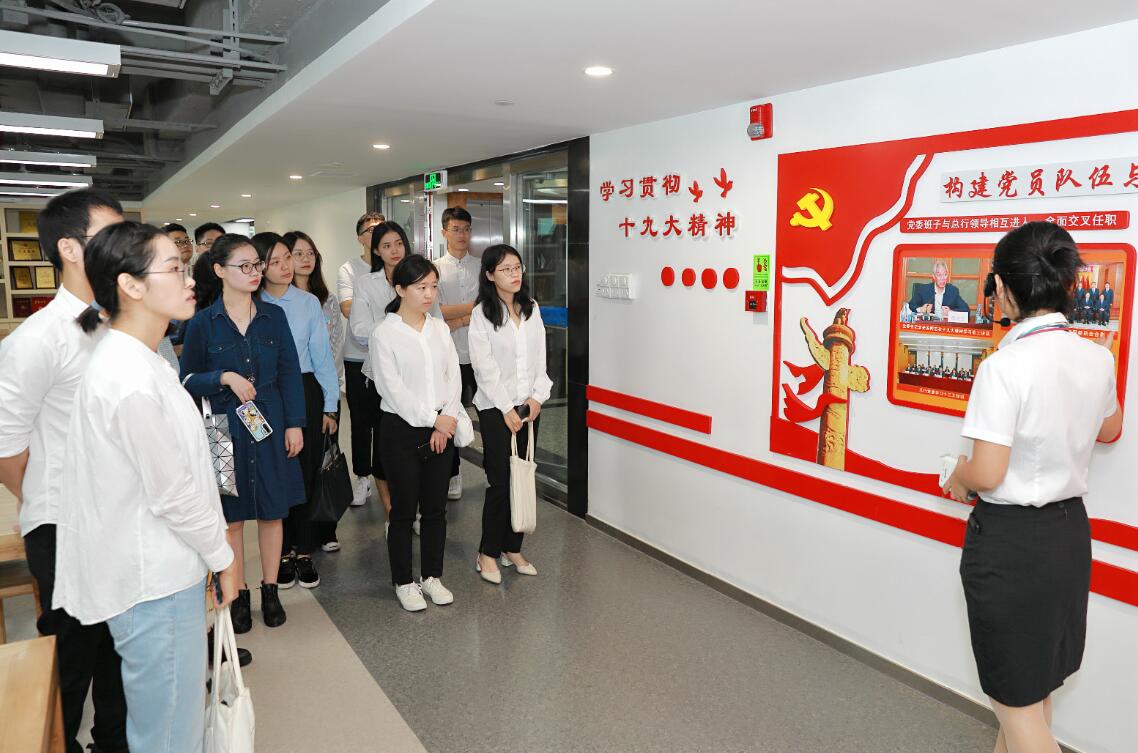 開放日活動的第一站總行大樓,同學們在深圳農商行工作人員的帶領下參觀了黨群活動中心,了解了黨組織架構、黨建特色活動、黨群風采展示與員工日常休閑娛樂活動。