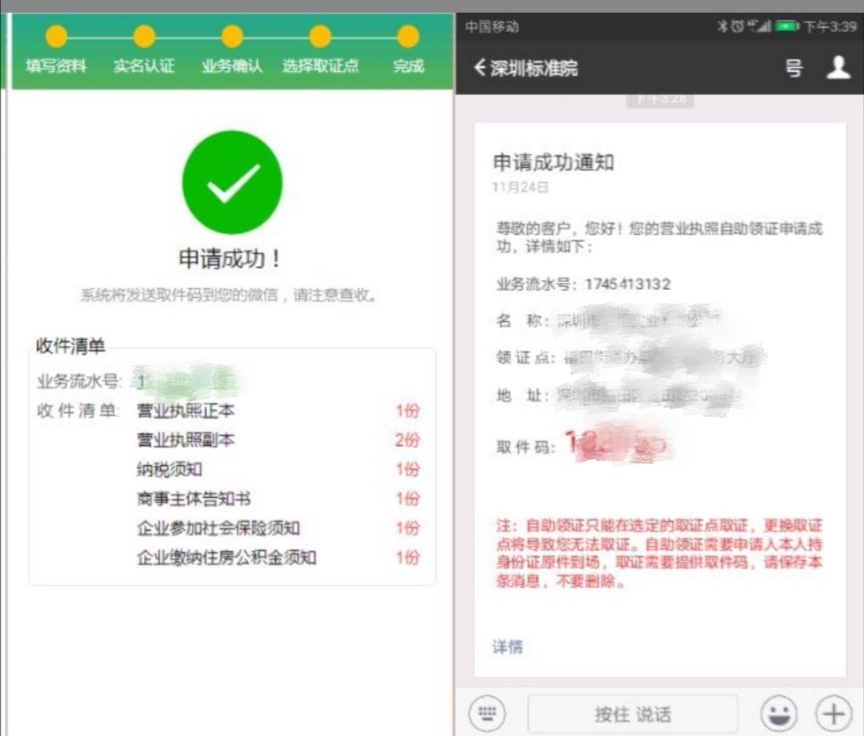自助領(lǐng)證服務(wù)通過(guò)微信公眾號(hào)“深圳標(biāo)準(zhǔn)院”線上申請(qǐng),自助機(jī)線下“刷臉”領(lǐng)證的方式,30秒完成證照領(lǐng)取,方便快捷。