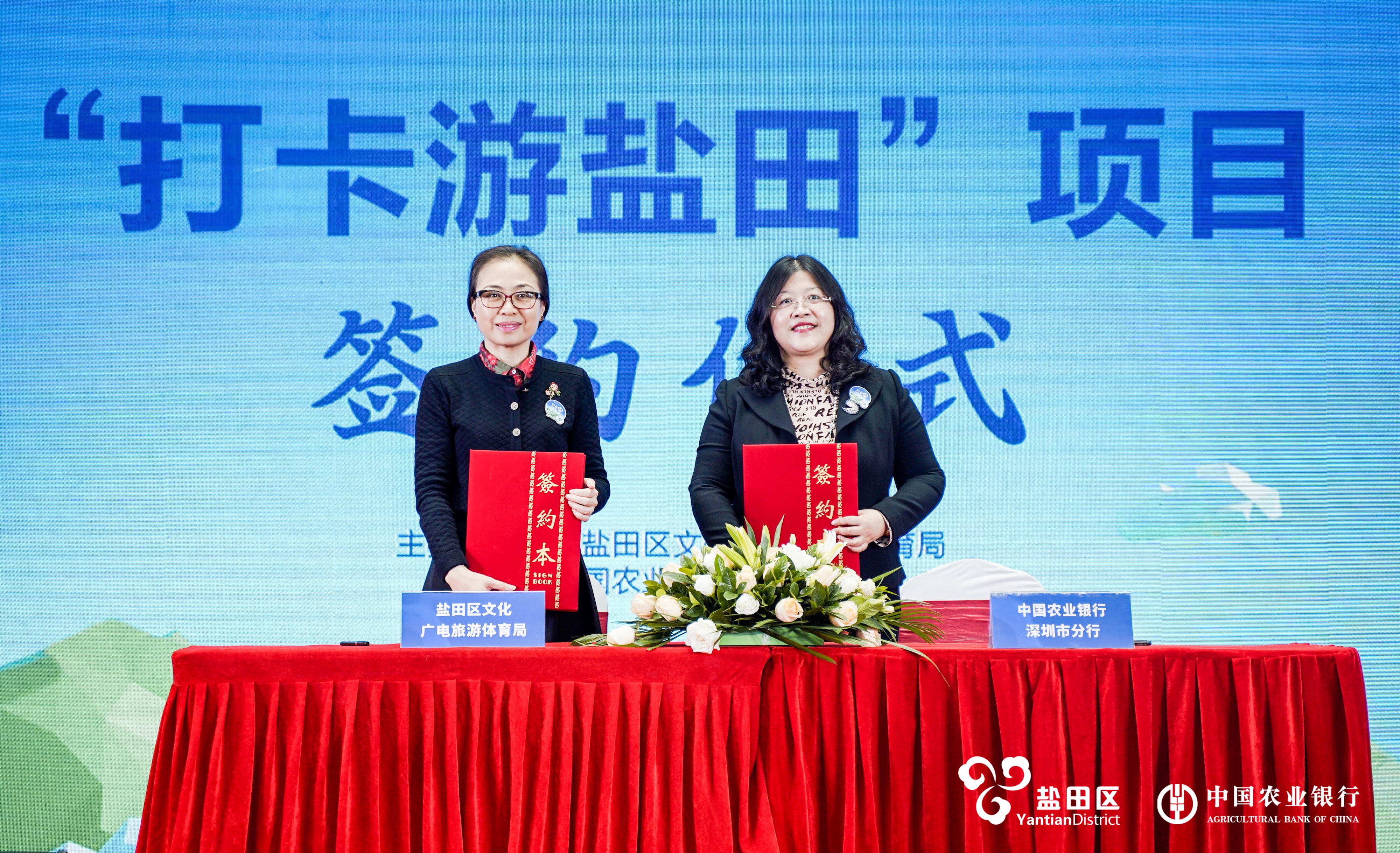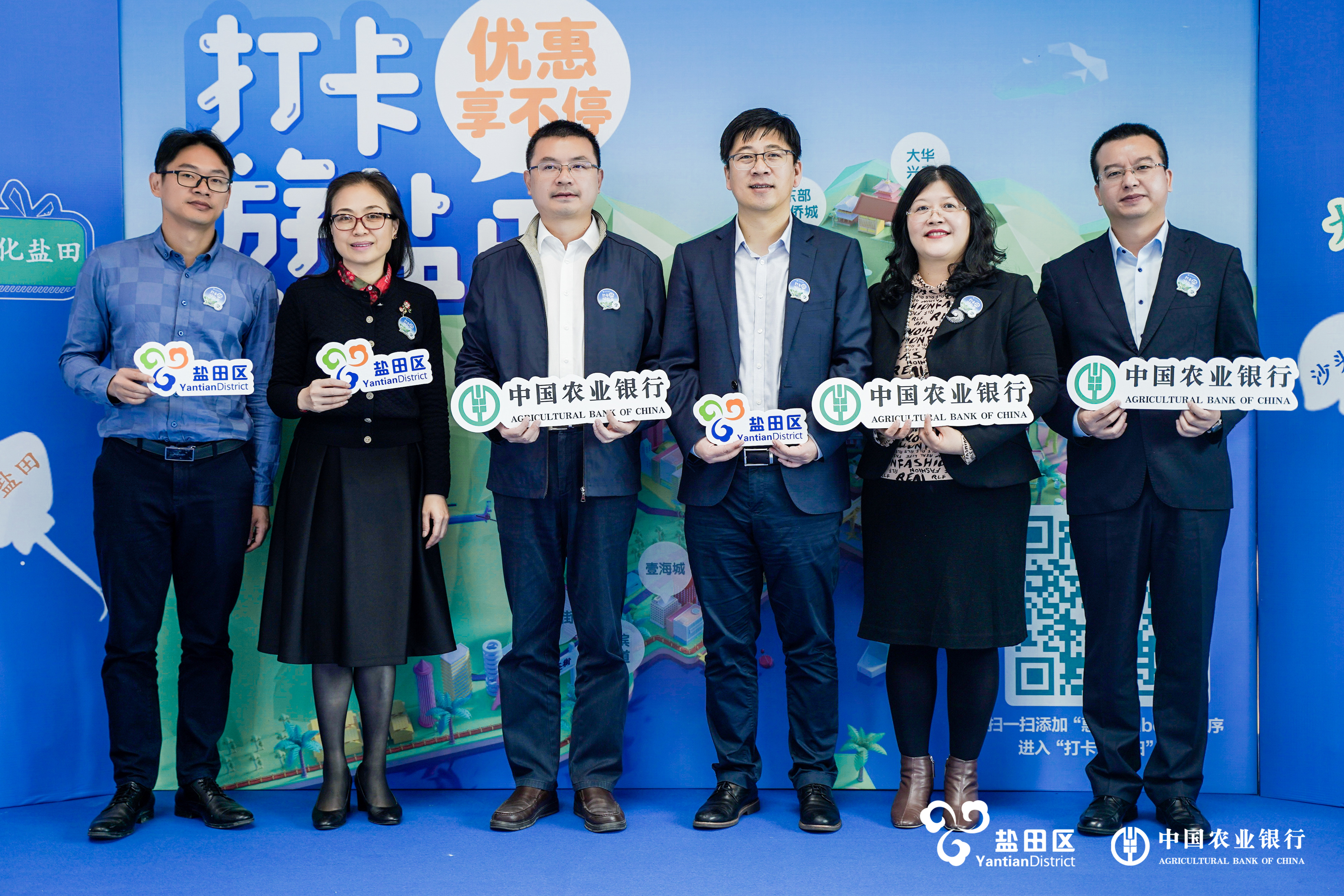 2019年12月17日上午,由深圳市鹽田區(qū)文化廣電旅游體育局主辦,農行深圳分行承辦的鹽田區(qū)第二期“打卡游鹽田”活動發(fā)布會在鹽田ONE MALL商場舉行。鹽田區(qū)副區(qū)長羅毅、鹽田區(qū)文化廣電旅游體育局局長彭潔、鹽田區(qū)文化廣電旅游體育局副局長王智華、農行深圳分行副行長魏秉全、農行深圳分行信用卡中心總經理張珂等相關領導出席發(fā)布會。會上,鹽田區(qū)副區(qū)長羅毅、農行深圳分行副行長魏秉全先后做開幕致辭與活動方案,鹽田區(qū)文化廣電旅游體育局局長彭潔、農行深圳分行信用卡中心總經理張珂現(xiàn)場簽署了《鹽田區(qū)第二期“打卡游鹽田”活動合作協(xié)議》,宣告活動正式落地。