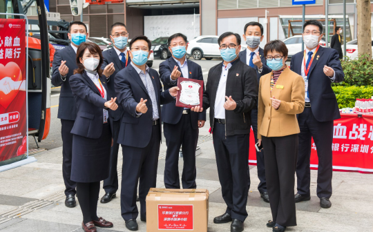 華夏銀行深圳分行行領(lǐng)導(dǎo)先后看望、慰問獻(xiàn)血員工。深圳市血液中心向華夏銀行深圳分行頒授感謝獎(jiǎng)牌,深圳分行孫海強(qiáng)副行長(zhǎng)代表分行向血液中心捐贈(zèng)1000只口罩。