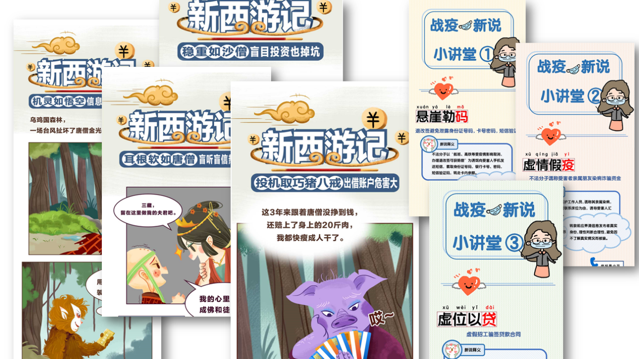 針對(duì)疫情期間頻繁出現(xiàn)電信網(wǎng)絡(luò)詐騙的情況,招商銀行深圳分行迅速反應(yīng),以原創(chuàng)漫畫、小視頻、線上直播及在線互動(dòng)問答等新穎形式開展抗疫防騙線上宣教,對(duì)不同類型的詐騙套路進(jìn)行揭示和解析,如虛假售賣醫(yī)用口罩、以慈善募捐名義騙取捐款等,及時(shí)對(duì)消費(fèi)者進(jìn)行風(fēng)險(xiǎn)提示。除此之外,還以普及金融消費(fèi)者享有的八項(xiàng)法定權(quán)利、倡導(dǎo)金融消費(fèi)者依法理性維權(quán)、宣傳個(gè)人征信業(yè)務(wù)網(wǎng)上辦理、識(shí)別非法金融廣告等知識(shí)為內(nèi)容,創(chuàng)作貼合時(shí)事、實(shí)用有趣、形式多樣的宣教作品,有效提升了消費(fèi)者在疫情特殊時(shí)期的金融素養(yǎng)。