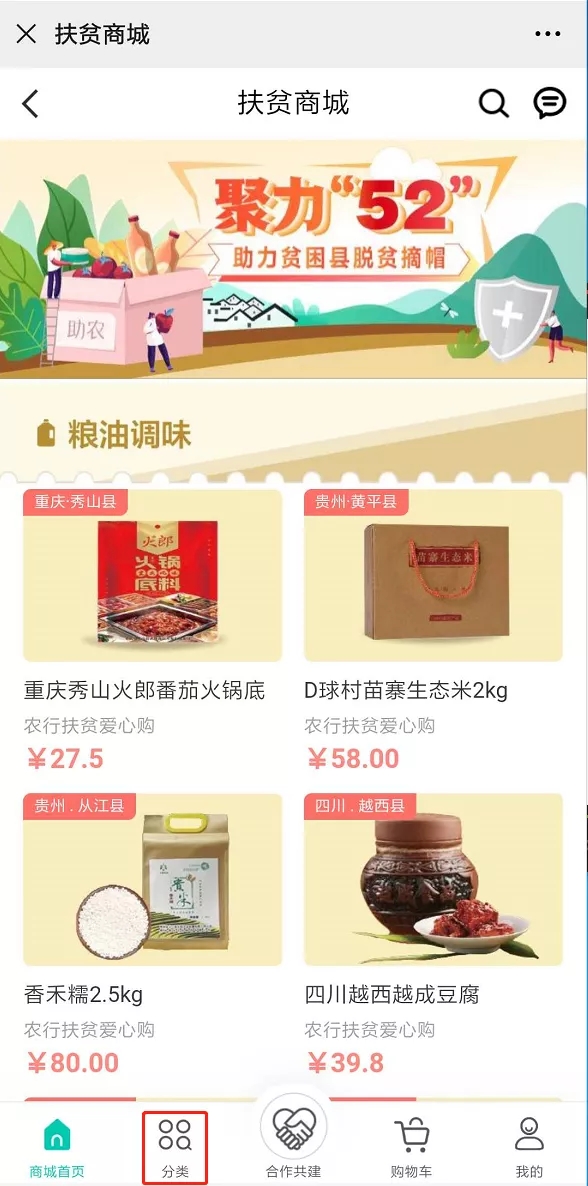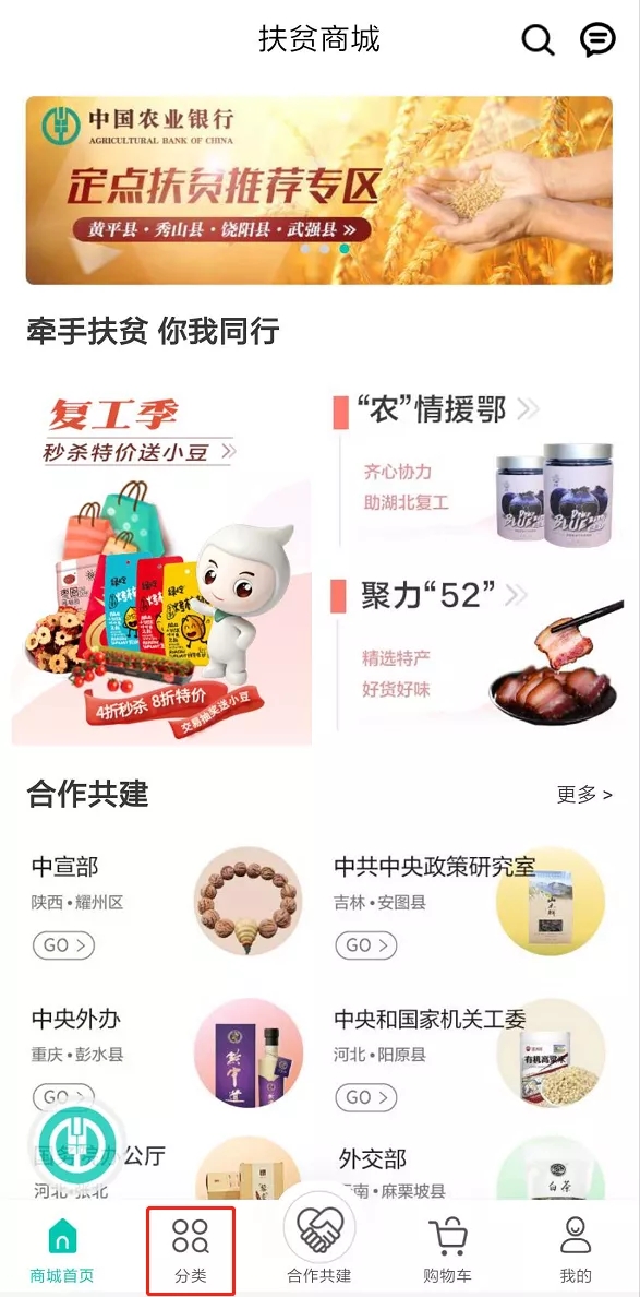 打開農行掌銀APP,點擊“生活”-“扶貧商城”