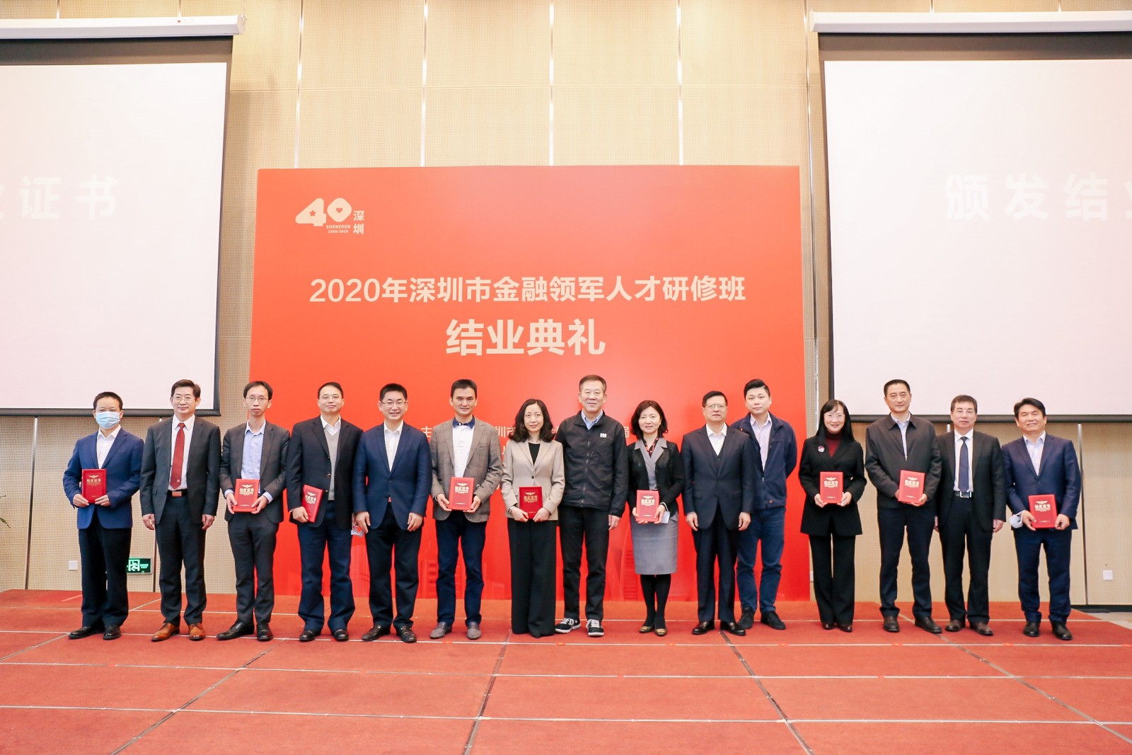 平生書記在致辭中表示,2020年是極不平凡的一年,是金融機(jī)構(gòu)積極主動作為、彰顯責(zé)任擔(dān)當(dāng)?shù)囊荒辏彩巧钲诮鹑跇I(yè)逆勢而上,保持平穩(wěn)健康發(fā)展的一年,金融機(jī)構(gòu)對全市統(tǒng)籌疫情防控和經(jīng)濟(jì)社會發(fā)展作出了重要貢獻(xiàn),金融業(yè)在全市經(jīng)濟(jì)增長實(shí)現(xiàn)V形反轉(zhuǎn)、率先翻正中發(fā)揮了“壓艙石”作用,這些成績來自每一位金融人才的拼搏奮斗,領(lǐng)軍人才為行業(yè)發(fā)展做出了積極的貢獻(xiàn)。研修班期間,學(xué)員們一起聆聽名家大咖講課、踴躍參加主題論壇、認(rèn)真撰寫調(diào)研報(bào)告,還開展了閉門研討、名企考察、交流互訪等形式多樣的活動,既豐富了知識、開闊了眼界,也促進(jìn)了交流、收獲了友誼,總體達(dá)到了預(yù)期效果,為全面實(shí)施“深圳百千萬金融人才培養(yǎng)工程”奠定了扎實(shí)基礎(chǔ)。他希望學(xué)員學(xué)思悟踐、學(xué)以致用,緊抓粵港澳大灣區(qū)、先行示范區(qū)“雙區(qū)驅(qū)動”和綜合改革試點(diǎn)的重大歷史機(jī)遇,聚焦制約行業(yè)發(fā)展重點(diǎn)難點(diǎn)問題,深入研究、謀篇破題,為深圳金融業(yè)高質(zhì)量發(fā)展做出更大貢獻(xiàn)。