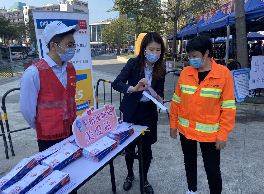 在年輕人較多的片區(qū),浦發(fā)銀行的“消保代言人”們向市民們詳細介紹了資管新規(guī)的相關知識。“保障金融消費者的知情權頗為重要,我們向市民們強調,必須根據自己的風險能力和風險承擔能力選擇相適應的產品,同時要積極關注金融機構信息披露的內容,守好自己的錢袋子?!蓖瑫r,他們也呼吁大家多多關注身邊的特殊群體,“年輕人尤其要有一桿消費公平的稱,主動為保護特殊群體的權益貢獻更多力量”。