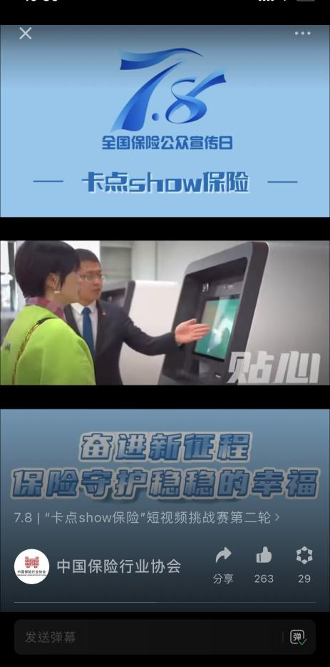 豐富多樣的線下活動,僅是太平人壽開展“7·8保險宣傳日”系列活動的一個側(cè)面。而另一個側(cè)面,太平人壽充分利用微博、抖音、視頻號等互聯(lián)網(wǎng)平臺,積極貫徹落實中國保險業(yè)協(xié)會組織開展的“卡點show保險”短視頻話題挑戰(zhàn)活動及“cue到我的幸福感@第10個7.8全國保險公眾宣傳日”網(wǎng)絡(luò)話題活動。