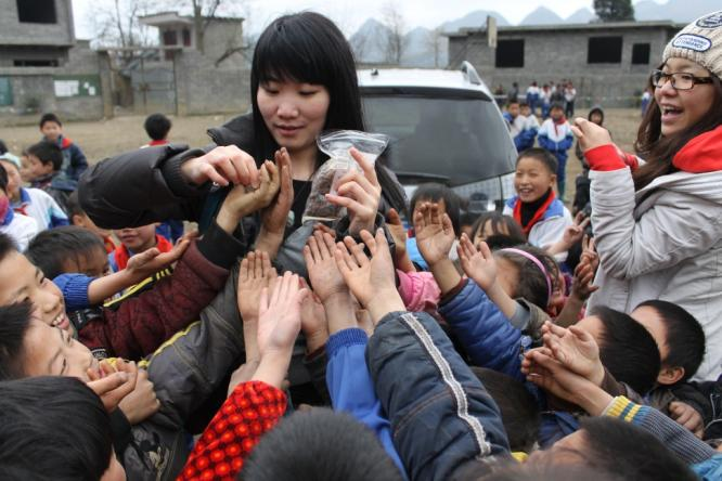 “我始終記得第一次去織金的情景。當(dāng)時(shí),我們從貴陽(yáng)出發(fā),走了5個(gè)小時(shí)的盤山公路,2個(gè)小時(shí)坑坑洼洼的盤山小路才到。難以忘記的是破敗的教室里孩子們黝黑冰冷的小手,鼻子上掛著的兩條‘小蟲’,透著冬日寒風(fēng)的衣服上的破洞。他們半倚在簡(jiǎn)陋的桌椅邊直打哆嗦,卻依然因?yàn)槲覀兊牡絹砭`放著暖陽(yáng)般的笑臉?!痹瓘V發(fā)銀行深圳分行副行長(zhǎng)駱向東回憶起考察邊遠(yuǎn)村小時(shí)的情景,至今仍心疼不已。
