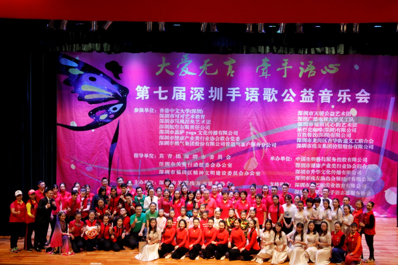 據(jù)悉,本屆手語歌公益音樂會由深圳市福田區(qū)宣傳文化體育事業(yè)發(fā)展專項資金資助,同時獲得市委宣傳部、市共青團、市關(guān)愛辦、區(qū)精神文明辦的大力支持,由深圳市關(guān)愛殘友志愿者協(xié)會主辦,中國生物科技服務(wù)控股有限公司、深圳市健康產(chǎn)業(yè)類行業(yè)協(xié)會聯(lián)合黨委、深圳市升學(xué)文化傳播有限公司和深圳市殘友演出會展經(jīng)濟有限公司等單位聯(lián)合協(xié)辦。自2008年首屆手語歌公益音樂會舉辦以來,歷屆“深圳手語歌公益音樂會”都會邀請政府、企事業(yè)單位、社會團體等學(xué)習(xí)手語歌舞、舉行大型公益匯演。(張俊達)