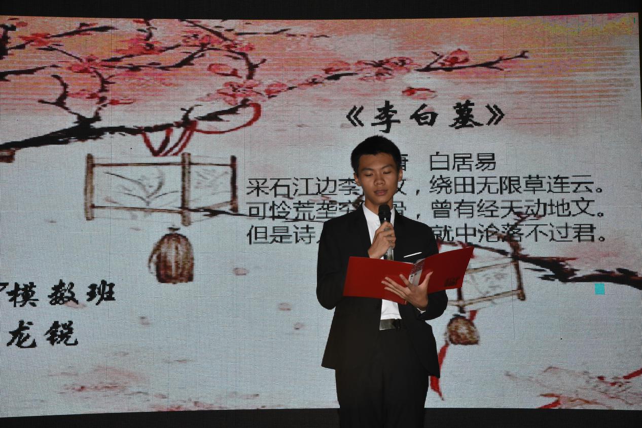 深圳新聞網(wǎng)訊 5月29日晚上,“新時(shí)代中華優(yōu)秀傳統(tǒng)文化進(jìn)社區(qū)”項(xiàng)目第五場(chǎng)活動(dòng)——“白居易詩歌專場(chǎng)朗誦大賽”在深圳市寶山技工學(xué)校寶山大舞臺(tái)拉開了帷幕,由寶山學(xué)子傾情吟誦白居易的詩歌,給聽眾帶來一場(chǎng)唯美動(dòng)人的視聽盛宴。