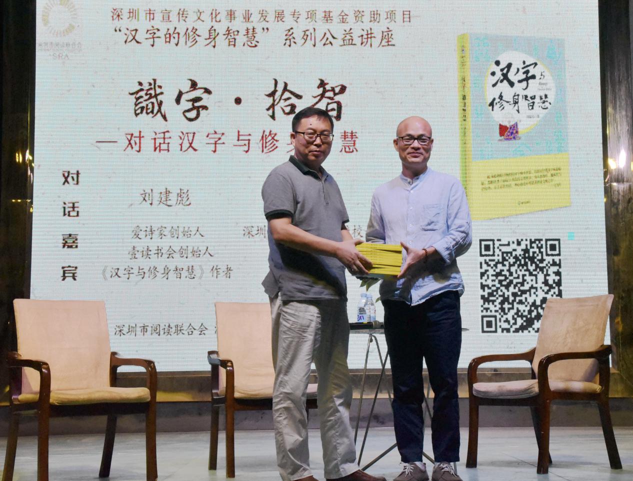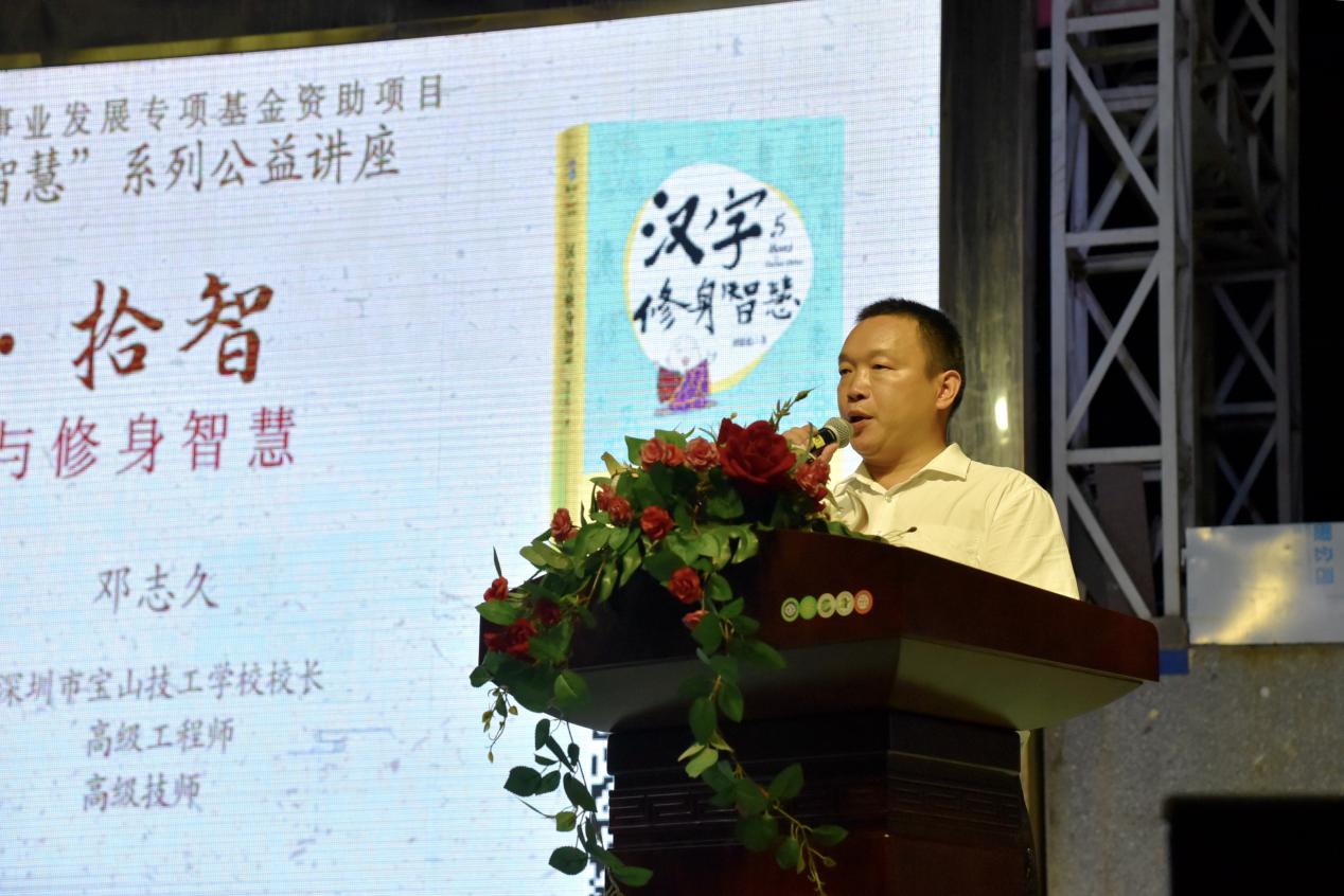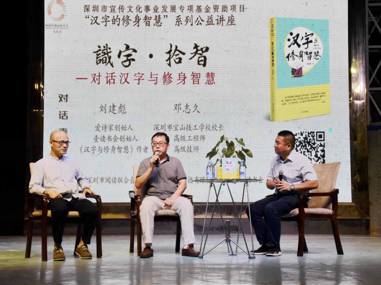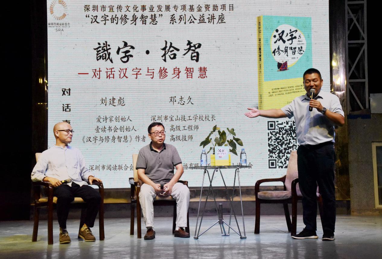 深圳新聞網(wǎng)訊 9月18日晚上7時,由深圳市閱讀聯(lián)合會、深圳市壹書文化傳播有限責(zé)任公司和寶山讀書會共同主辦的“‘識字拾智’——對話漢字與修身智慧”公益文化講座在寶山技工學(xué)校寶山大舞臺拉開了序幕。據(jù)悉,這是由深圳市宣傳文化事業(yè)發(fā)展專項(xiàng)基金資助項(xiàng)目“漢字的修身智慧”的第三場公益文化講座,以劉建彪《漢字與修身智慧》新書分享為契機(jī),傳播漢字正能量,讓更多的青少年識字長智,領(lǐng)略漢字文化之精妙。