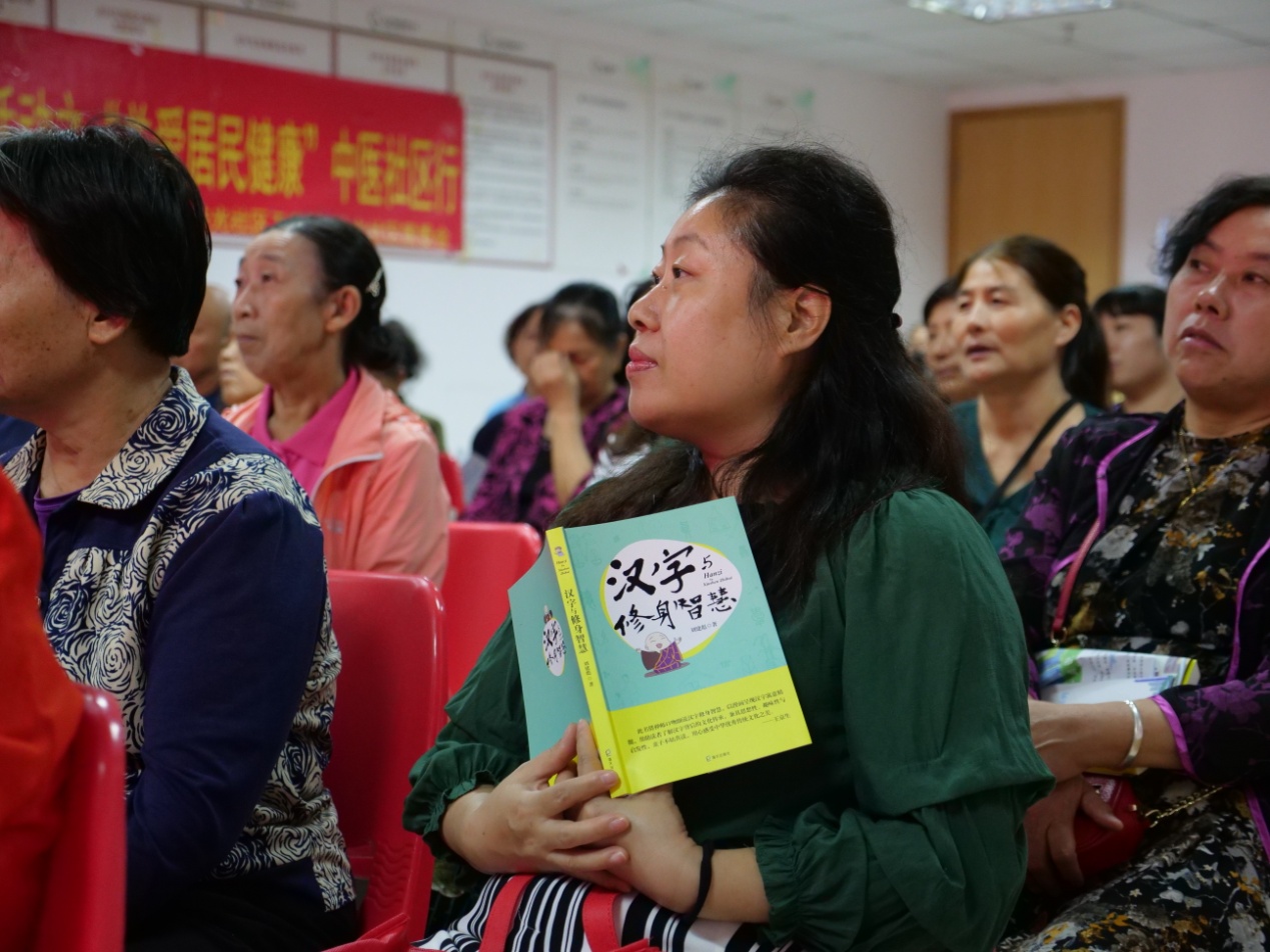 活動現(xiàn)場,珠光社區(qū)的叔叔阿姨們坐得整整齊齊,人手一本《深圳市民公約》冊子和《漢字與修身智慧》學(xué)習(xí)資料,認(rèn)真地翻閱著。