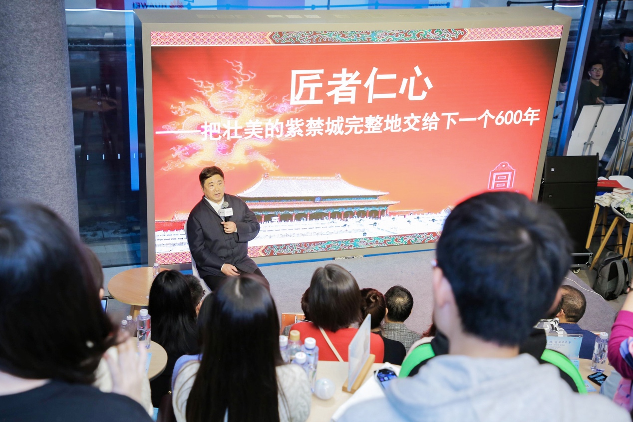 分享開始前,單霽翔談到:很多人都說故宮成“網(wǎng)紅”了,我成“網(wǎng)紅”了。面對(duì)這些,我認(rèn)為故宮沒有刻意追求“網(wǎng)紅”效應(yīng),我們是被‘網(wǎng)紅’的?!弊约阂仓皇枪蕦m的“看門人”而已,并不是什么“網(wǎng)紅”。幽默風(fēng)趣的內(nèi)容引來現(xiàn)場(chǎng)觀眾陣陣掌聲。