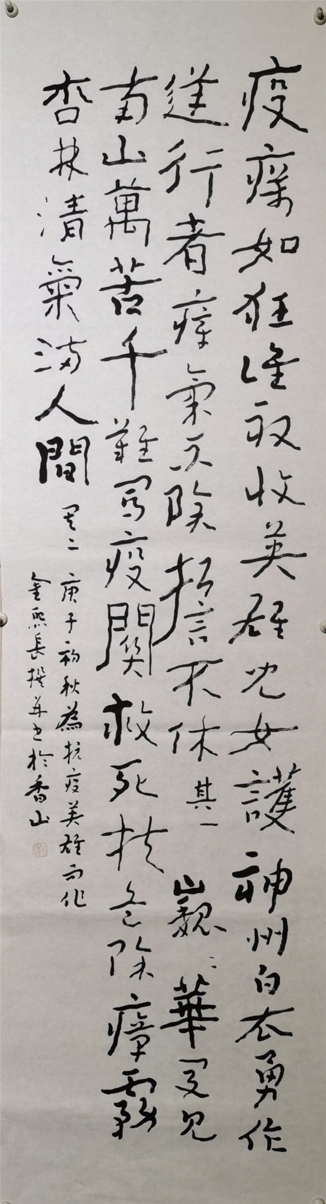 數(shù)十年錘煉方成經(jīng)典,金熙長先生書法作品出碑入帖,師古而化古,且長年煉氣修道,下筆真陽,書風(fēng)湛亮而幽深高簡(jiǎn)。有靜穆之氣,無馳騁之象;中和沖逸,似聞鶯舞。被行內(nèi)名家稱為當(dāng)代居士書風(fēng)的開拓者、著名隱士書家。