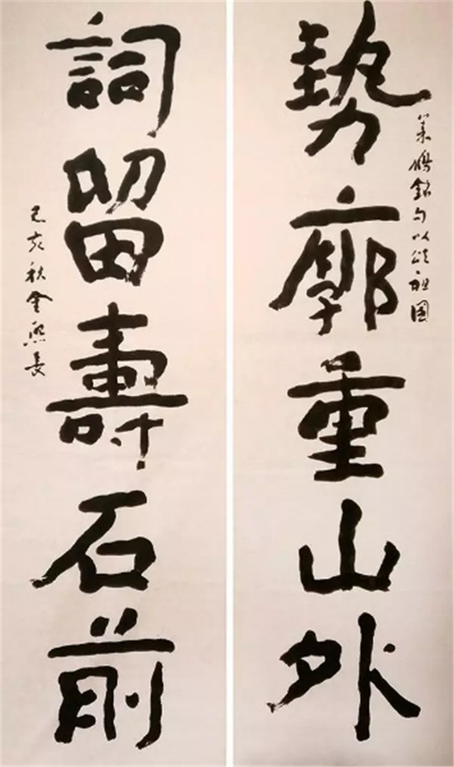 “筆筆有出處,字字有來歷。每個(gè)字用筆中鋒但結(jié)字奇古;書風(fēng)野逸但又視覺大氣。正如創(chuàng)作者所言:中國是歷史悠久的文化大國,所以中國的文字書寫應(yīng)該和大國文化相吻合的,以雄渾大氣為主要審美意識(shí)的表現(xiàn)手法方能展現(xiàn)中國精神。在技法上他還認(rèn)為,秀媚易作雄渾難;小巧易作高簡(jiǎn)難。故在本次《金體》創(chuàng)作上的審美觀念上,他仍以三個(gè)第一為導(dǎo)向,即“結(jié)體以正大老成為第一,用筆以簡(jiǎn)重真切為第一,書風(fēng)以高古偉岸為第一。