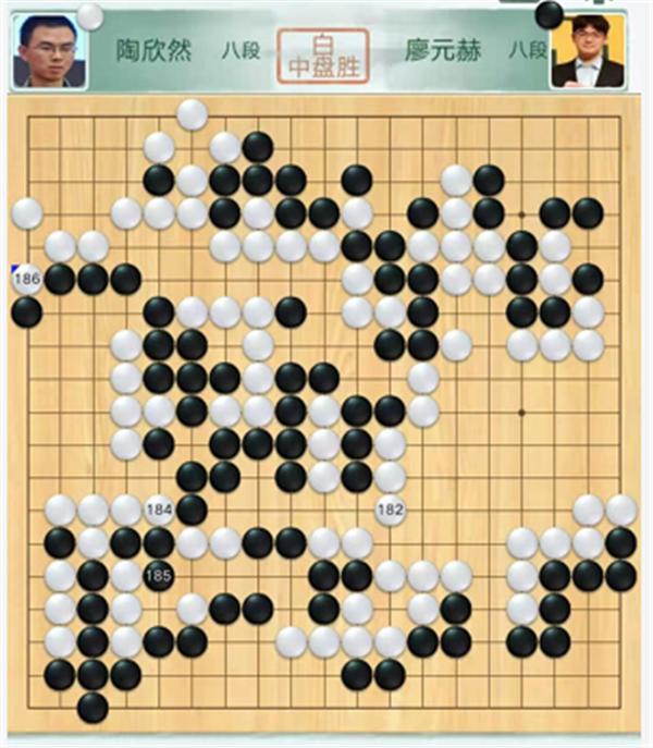 第四臺慢棋,由深圳隊(duì)陶欣然八段執(zhí)白對陣成都隊(duì)廖元赫八段。中央戰(zhàn)斗時候白棋選擇退讓,反倒形成打劫,黑棋劫勝后大幅領(lǐng)先。之后黑棋官子階段不夠冷靜細(xì)膩,幾處小虧損之后被白反超。黑棋看到局面危險更加沖動的選擇和白棋互相破空,結(jié)果又虧損導(dǎo)致差距越來越大。陶欣然執(zhí)白中盤勝廖元赫。