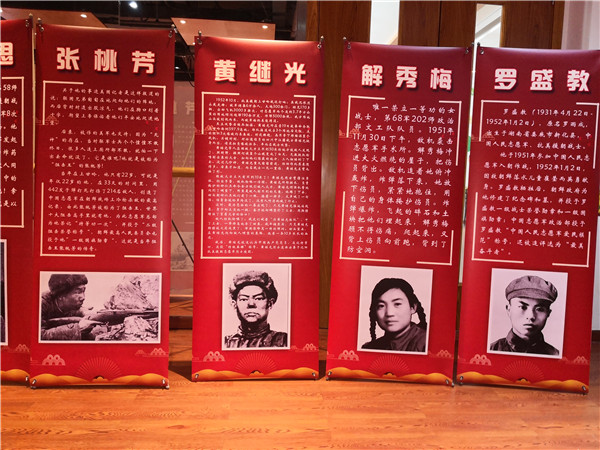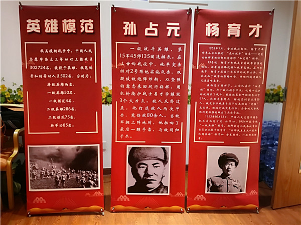 《抗美援朝十大英雄和著名戰(zhàn)役宣傳展》主要以展板形式陳列在活動(dòng)現(xiàn)場(chǎng)四周,以便于到場(chǎng)的人學(xué)習(xí)參觀(guān)。據(jù)悉,在抗美援朝戰(zhàn)爭(zhēng)中,中國(guó)人民志愿軍榮立三等功以上指戰(zhàn)員有302724名,被授予英雄、模范稱(chēng)號(hào)和特等功人員502名,其中:特級(jí)英雄兩名,一級(jí)英雄50名,一級(jí)模范4名,二級(jí)英雄286名,二級(jí)模范75名,特等功85名。本次宣傳展收集了十位最有影響的英雄,他們是:彭德懷、楊根思、黃繼光、解秀梅、孫占元、邱少云、楊育才、張?zhí)曳?、王海、羅盛教。著名戰(zhàn)役有:上甘嶺戰(zhàn)役、馬良山爭(zhēng)奪戰(zhàn)、橫城反擊戰(zhàn)、云山之戰(zhàn)……參觀(guān)之后,許多人為英雄人物的言行所感動(dòng),表示要傳承發(fā)揚(yáng)抗美援朝不畏強(qiáng)權(quán)的英雄主義和革命精神。