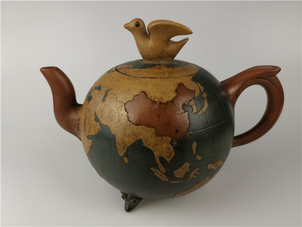 再說(shuō)第二件,《世界和平壺》的回歸。2020年6月,唐朝霞老師的愛(ài)人韋強(qiáng)先生正在深圳商會(huì)開(kāi)會(huì)。其間,一次會(huì)議結(jié)束后剛回到酒店時(shí)手機(jī)響起!一位美國(guó)的朋友電話給他告訴他一個(gè)天大的喜訊:在日本發(fā)現(xiàn)了唐朝霞爺爺唐鳳芝的傳奇作品“世界和平壺”。韋強(qiáng)介紹說(shuō),1943年,因?yàn)樘气P芝是民國(guó)時(shí)的紫砂大師,民國(guó)政府委托唐鳳芝先生特制了“世界和平壺”,隨后,由宋美齡女士在赴美國(guó)演講時(shí)一起帶了過(guò)去,象征著世界和平之意!想不到時(shí)隔80年,竟然在日本出現(xiàn)了。韋強(qiáng)說(shuō),看到實(shí)物照片時(shí),真的太激動(dòng)了!此前,他們?cè)诩依镏豢吹竭^(guò)爺爺設(shè)計(jì)的圖紙,從沒(méi)看到過(guò)實(shí)物,接到這意外訊息真的是驚喜萬(wàn)分!真是難以入眠!通過(guò)一系列的協(xié)調(diào),日本的藏家愿意轉(zhuǎn)讓,讓激動(dòng)的心更加興奮了,立即訂了機(jī)票,著手辦理“回歸事宜”。當(dāng)他終于在海關(guān)拿到了這件作品,包裝非常完好,便緊緊的抱在胸前:飄泊海外80年的“思念”終于落定了,爺爺唐鳳芝的“世界和平壺”終于回家了。韋強(qiáng)說(shuō):當(dāng)時(shí)的心情無(wú)法用言語(yǔ)形容!只覺(jué)得天空格外清新、陽(yáng)光格外燦爛!