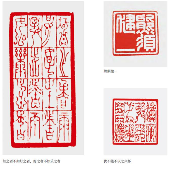 說起自己的代表作,寧老師十分謙虛,但筆者還從他的印屏、印作中,從以往宣傳報道中理出了一些頭緒。比如,剛來深圳,有感于鄧小平同志的功績,刻了一方《總設(shè)計師鄧小平》,陳巨來的印味明顯。2013年寶安區(qū)書法協(xié)會發(fā)行新年掛歷上印有“蛇年大吉”印章,便出自他手。那是一方金文白文印,整體舒朗開闊,靈動高古,爛漫天成,不失為其代表作。還有,用一方印完整地刻出了268字的《心經(jīng)》亦是獨(dú)一無二的。他為友所刻《真善美》朱文鳥蟲篆,布局疏密自然,光潔妍美,婀娜多姿,韻味無窮。元朱文白文印《熊須健一》,疏密呼應(yīng),“一”字處大片留紅,與另三字形成強(qiáng)烈對比,“須”字三撇作美化處理,形成印眼。此印工穩(wěn)爽朗,行刀如筆,耐人尋味。還有應(yīng)約為著名棋手武宮正樹、徐瑩等所刻鳥蟲篆印均“嵌入”圍棋黑白二子的元素,自然貼切,又妙趣橫生。還有為出版社、書局、書籍插圖以及賽事配刻的印章更是數(shù)不勝數(shù)。當(dāng)前,寧老師依然精神飽滿、創(chuàng)作旺盛,相信未來還會不斷有令人驚喜的印品佳作問世。