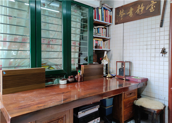 書房約莫20平米不到,擺設(shè)裝點(diǎn)里透射出寧老師的日常。當(dāng)陽光照進(jìn)這間寧靜的小屋,他習(xí)慣于先打開音樂,在舒心樂聲中開始他一天讀書、刻印的生活。累了,在小桌上喝喝茶,或彈上一段古琴,或者玩賞一下他收藏的心愛鈴鐺。據(jù)介紹,他專門收藏西北一帶富貴人家的馬鈴,目前有100余個。寧老師說,“讀書、養(yǎng)性、積德、延年”是其志向,井井有條、一絲不茍的書房就是佐證。長期的濡養(yǎng),讓人感到寧老師的談吐從容、情趣高雅、思想深刻。映照在篆刻上,寧老師的印作也日漸沉穩(wěn)大氣,除姓名印章外,所刻內(nèi)容啟人心智,如“以正大立心”“以光明行事”“修辭立其誠”等等。