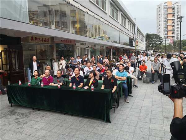 開幕儀式上,珍風閣藝術館總經(jīng)理夏雨致辭,感謝一從嘉賓和書畫愛好者們的捧場。隨后,深圳市美術家協(xié)會名譽主席、深圳美術館原館長宋玉明先生致辭。他說,他來大芬村多次,一直關注大芬油畫村的發(fā)展和壯大,認為大芬村為全國書畫走向市場開了先例。個人在此舉辦畫展是首次,感覺很有意義,是一次走向市場的實踐機會,值得珍惜和學習,也歡迎大家批評指正。在現(xiàn)場,宋玉明老師還回答了主持人的提問。他謙虛地說,這次和陳湘波主席的聯(lián)展,有陳主席的花鳥和自己的城市山水,可以雅俗共賞。陳湘波老師因參加“兩會”未能出席開幕儀式,但在會后及時趕到現(xiàn)場,表達自己對來賓的感謝和自己對本次畫展組織的重視和支持。