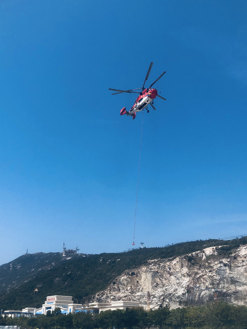 此次KA32直升機吊裝驗證飛行,由海直通航與長隆建設(shè)工程有限公司、波馬嘉仕其(北京)索道有限責任公司共同組織開展,三家公司在數(shù)月前就開展驗證飛行進行多次交流探討,對起吊和放貨場地進行多次現(xiàn)場勘查,研究分析技術(shù)難點,制定了詳細的飛行方案和安全預案。